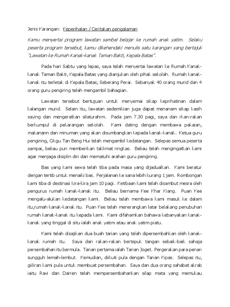 Jenis Karangan Keperihalan Lawatan Ke Rumah Kanak Kanak Pdf