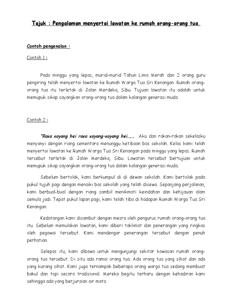 Karangan Yang Bertajuk Pengalaman Menyertai Lawatan Ke Rumah Orang Tua Pdf